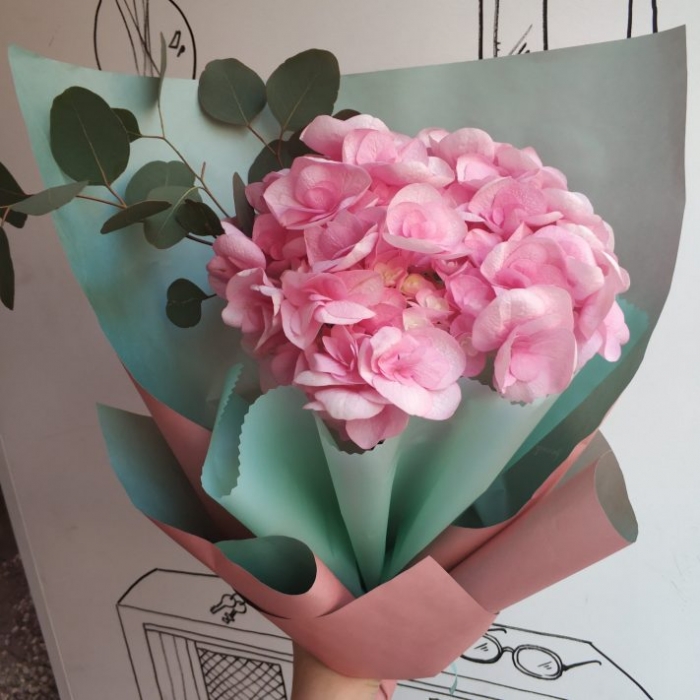 ГлавнаяЦветыГортензии Букет из гортензии и эвкалипта