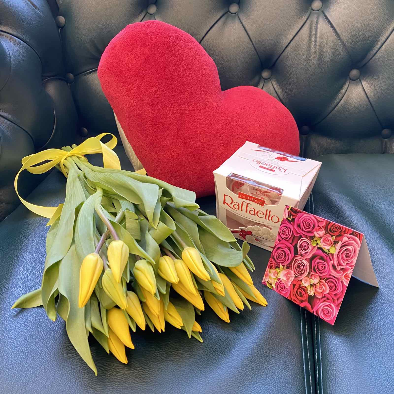 Подарочный набор «Весенний» желтые тюльпаны + сердце