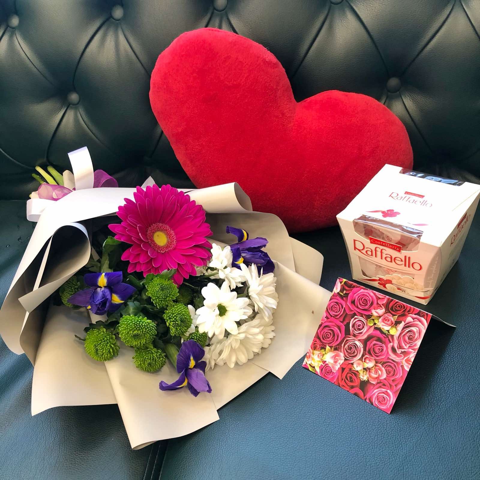 ГлавнаяЦветыХризантемы Подарочный набор «Для моей любимой» + сердце