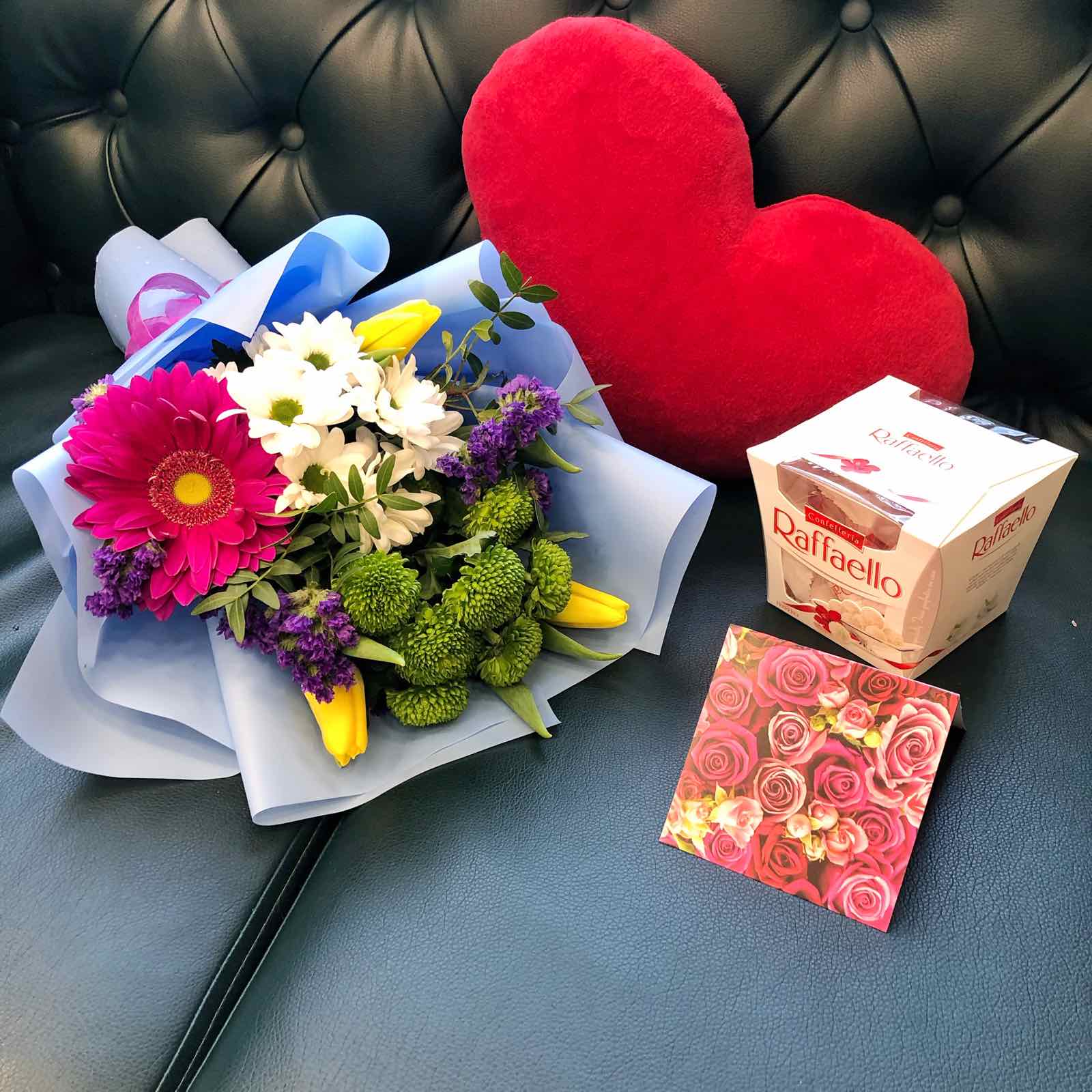 Яркий сборный букет, который поднимет настроение в любую погоду.