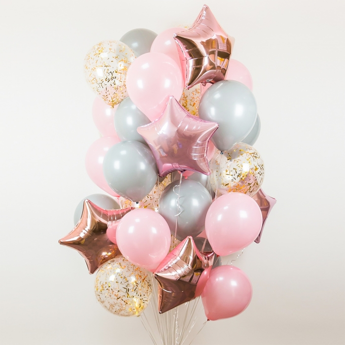 Сборка из шариков Микс в нежно-нежно розовой цветовой гамме.
