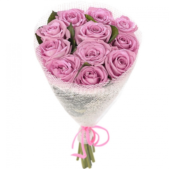 Букет состоит из 11 фиолетовых роз сорта Армандо длиной 35 см, оформление сетка