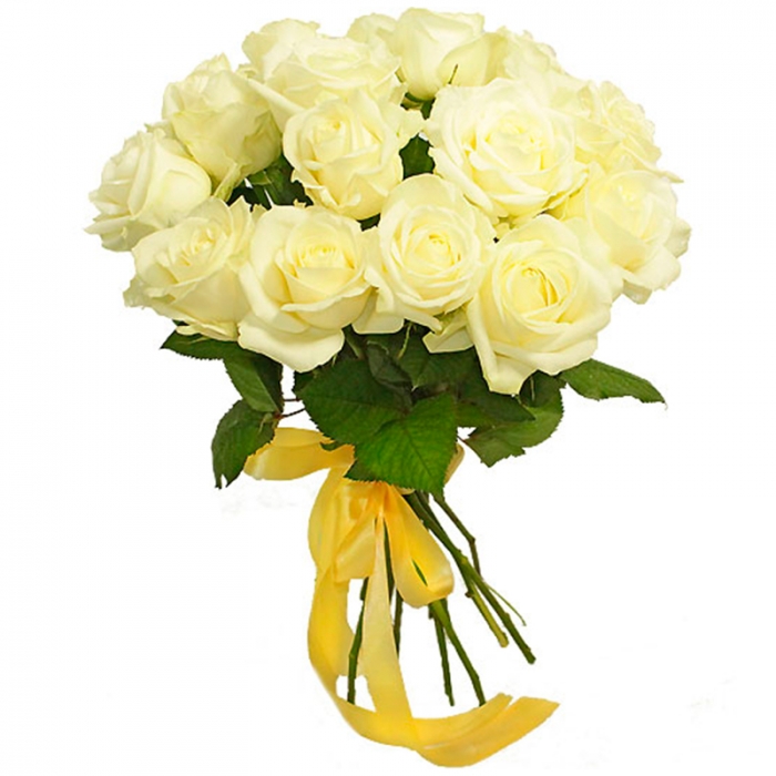 Букет из 15 белых роз 70 см. Небольшой, но красивый букет, оформленный ленточкой