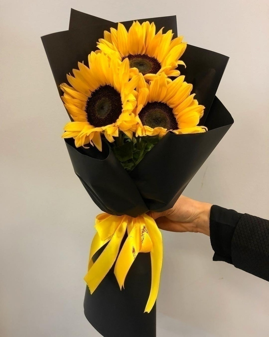 ГлавнаяЦветыПодсолнухи Букет из 3 подсолнухов
