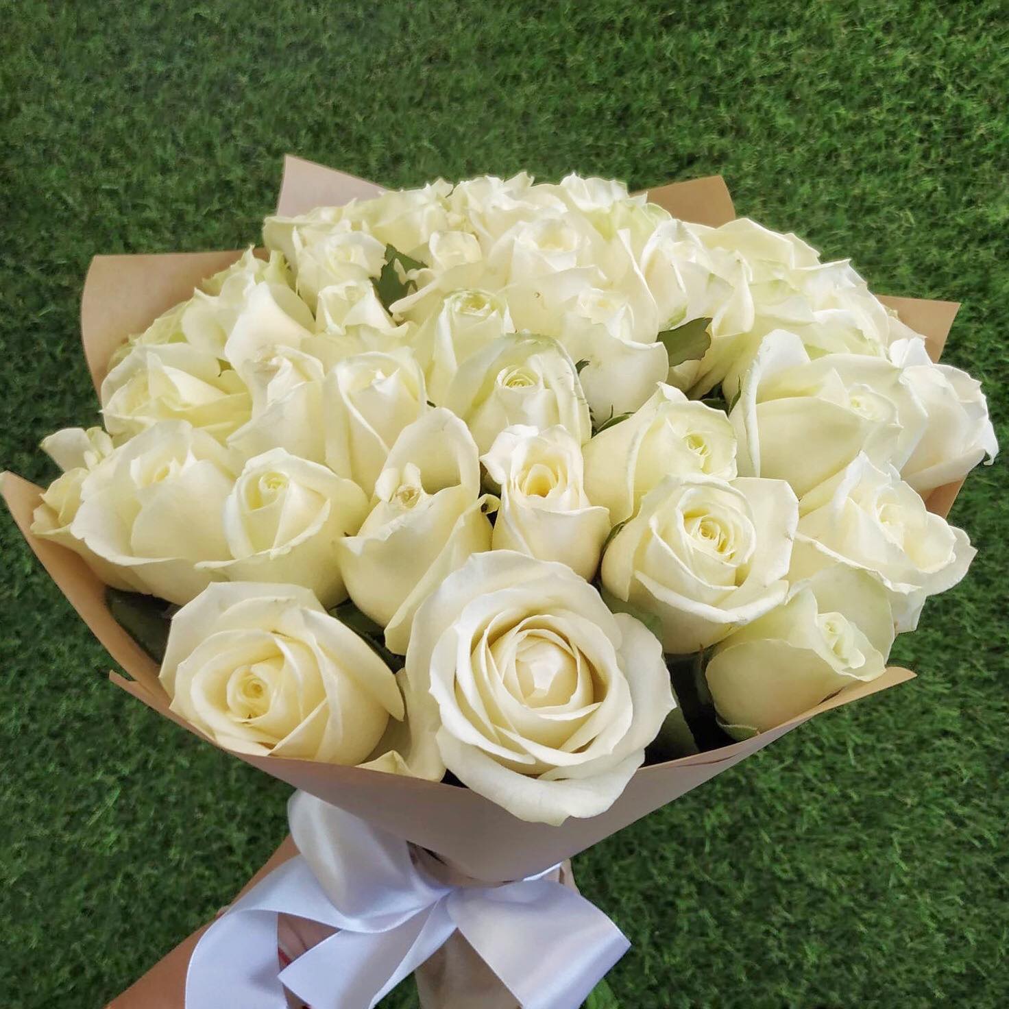 Шикарный букет из белых роз, высотой 50 см. в крафт оформлении.