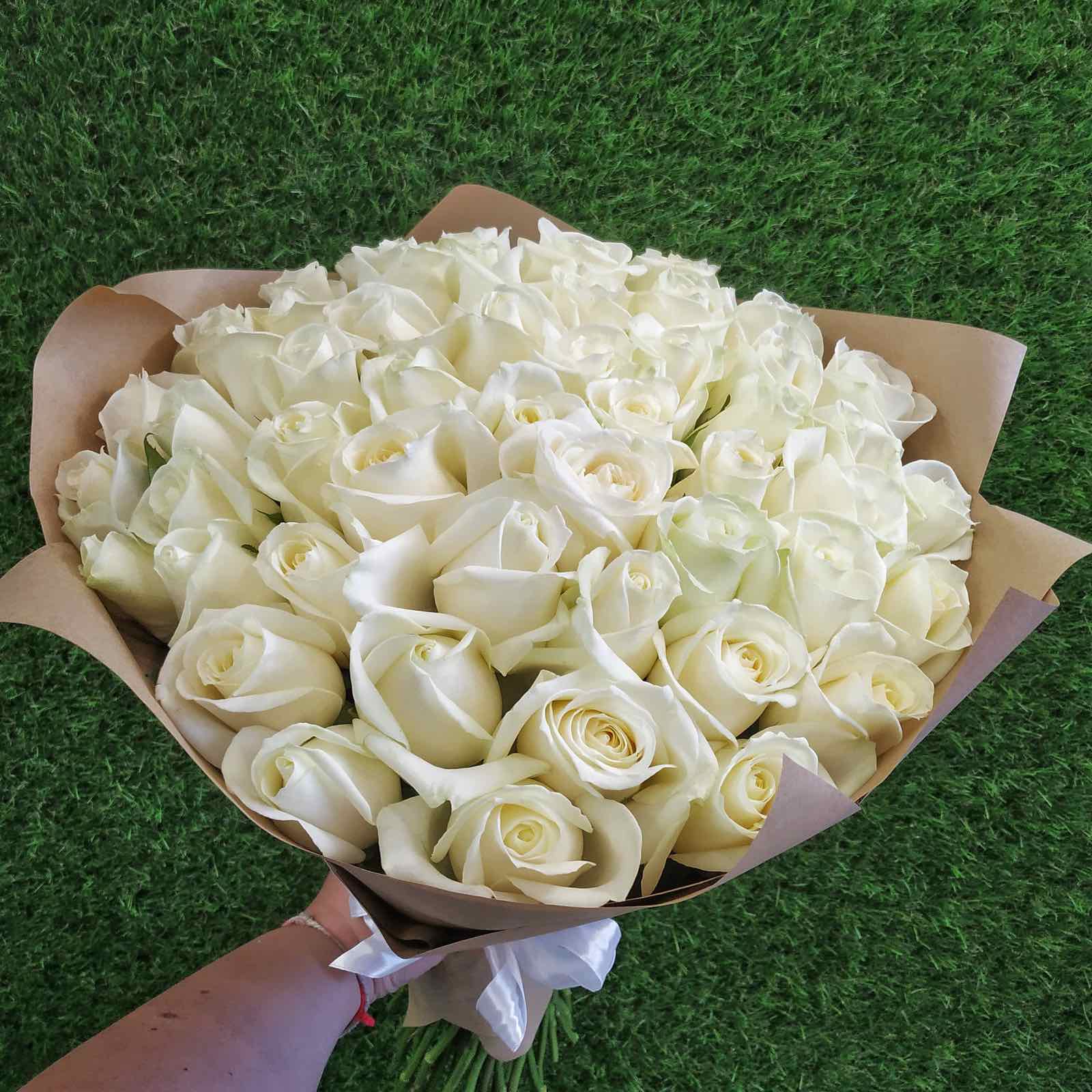 Букет из 51 белой розы в крафте