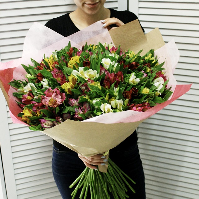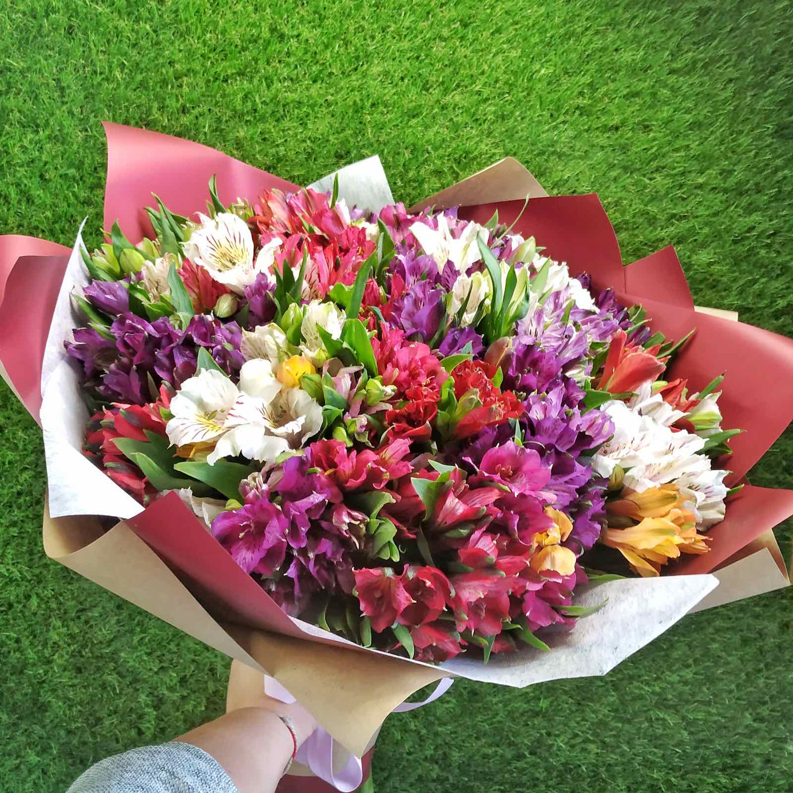 ГлавнаяЦветыАльстромерии Букет из 51 веточки разноцветной альстромерии