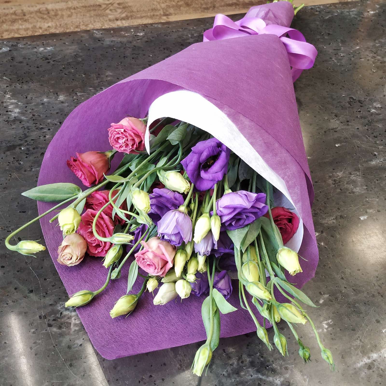 Букет из 7 веточек эустом в фиолетовом оформлении