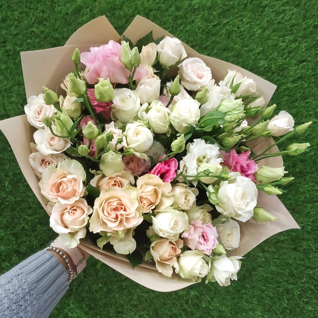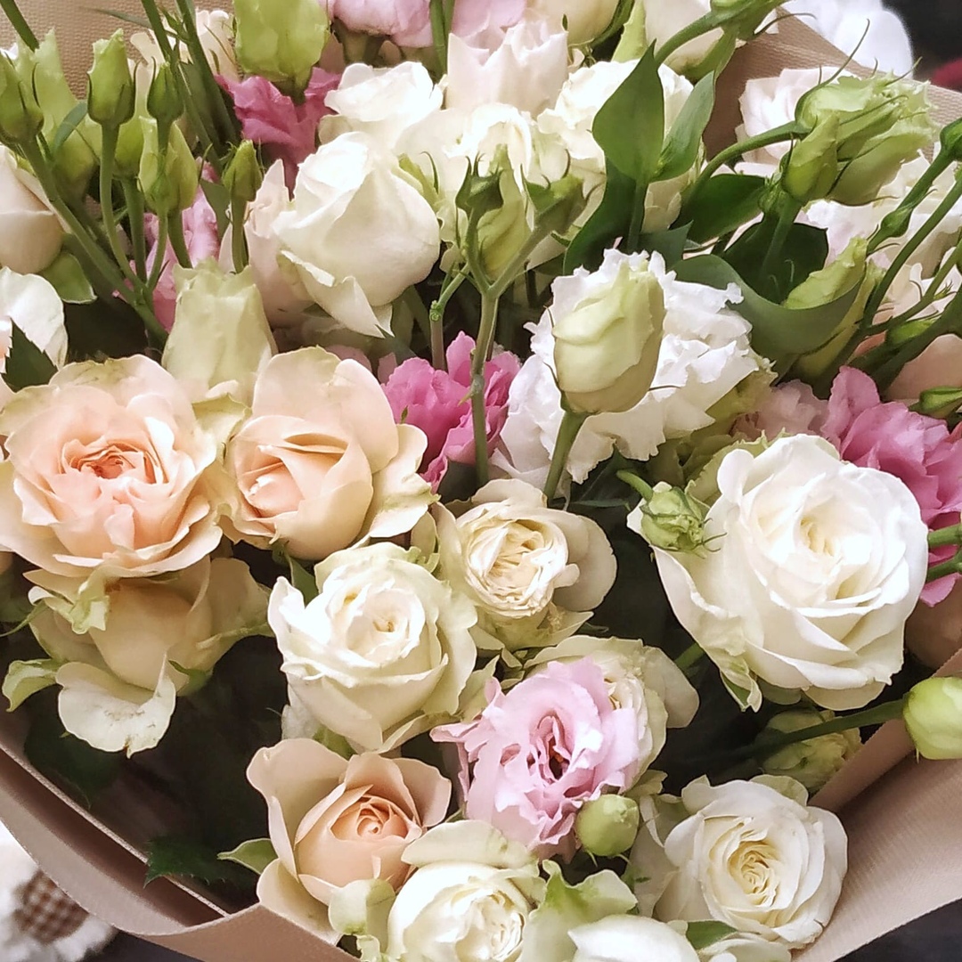 ГлавнаяЦветыЭустомы Букет из эустом и роз «Неженка»