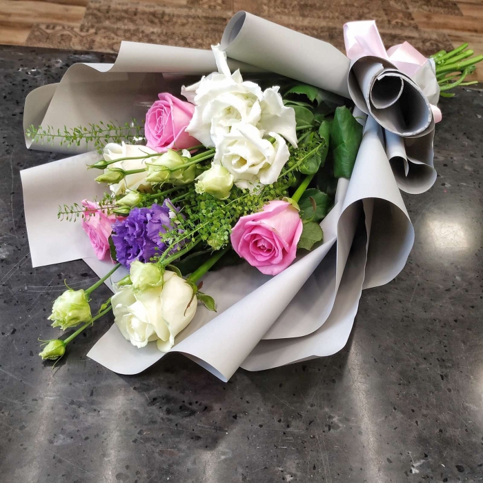 ГлавнаяЦветыЭустомы Букет из роз и эустом «Прикосновение»