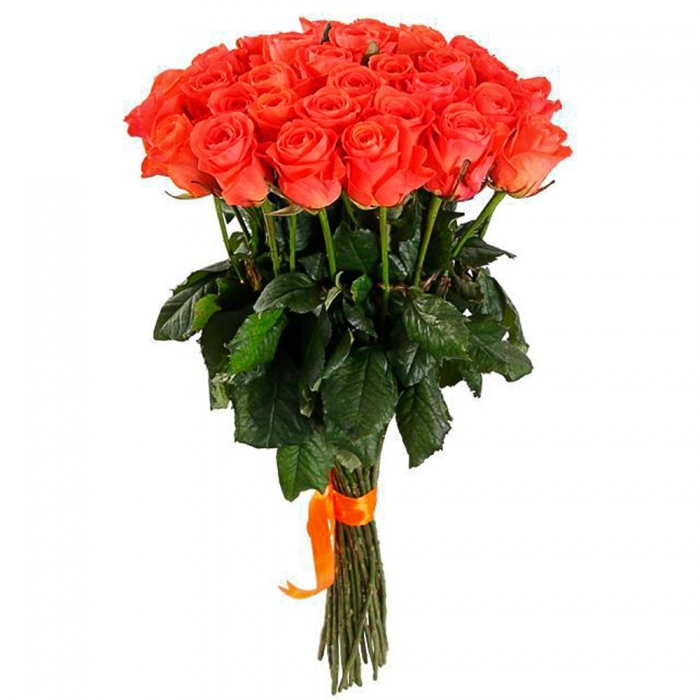 Яркий букет из роз сорта Вау длиной 50 см. Кол-во роз 25.