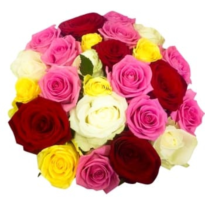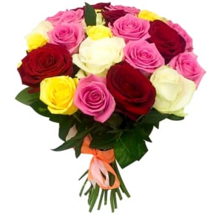 Яркий и солнечный букет из разноцветных роз.
