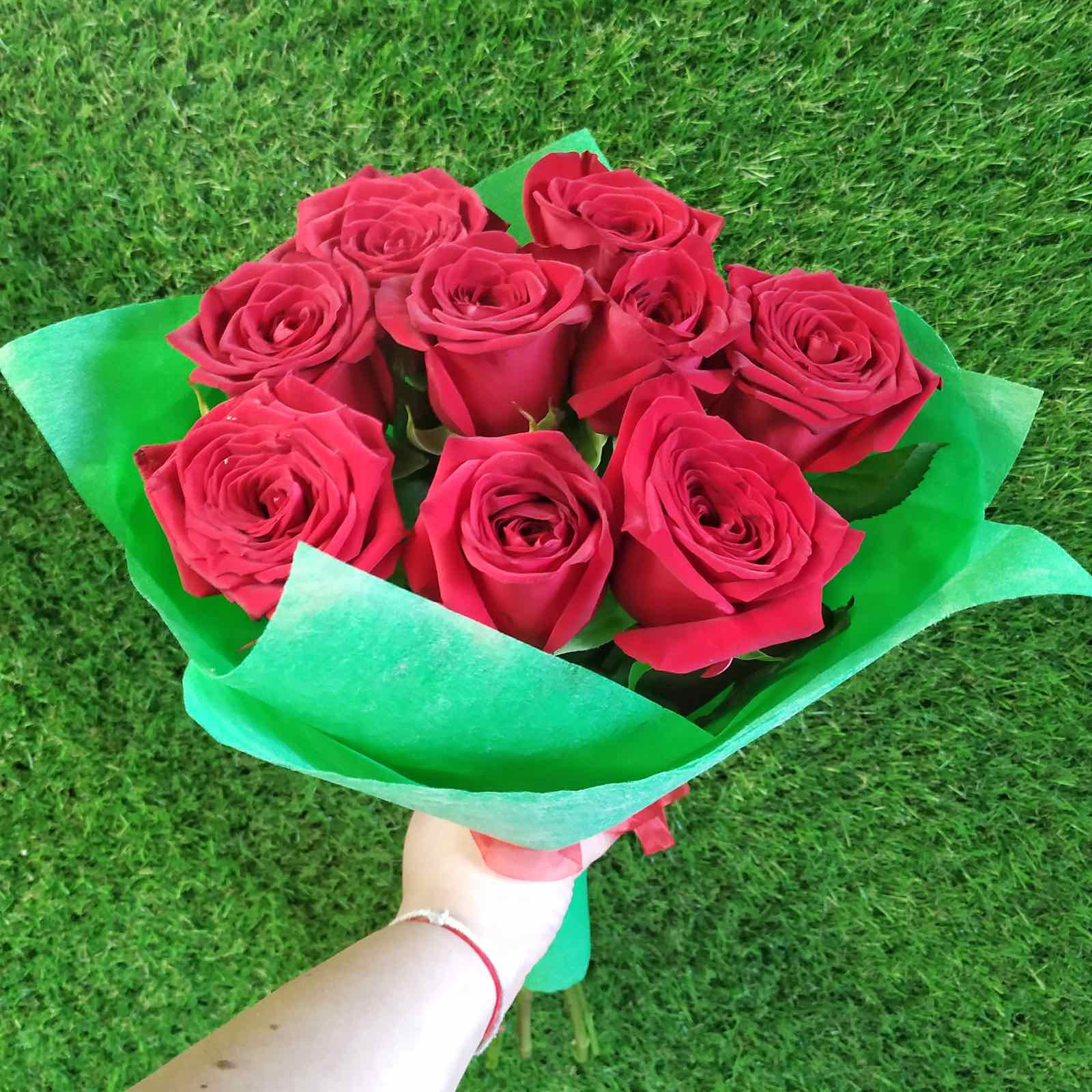 ГлавнаяКому даритьЖене Букет в зеленом из 11 красных роз 50 см