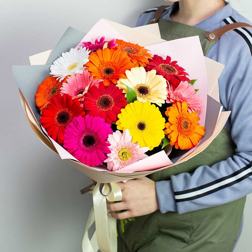 Букет из 15 цветных гербер.