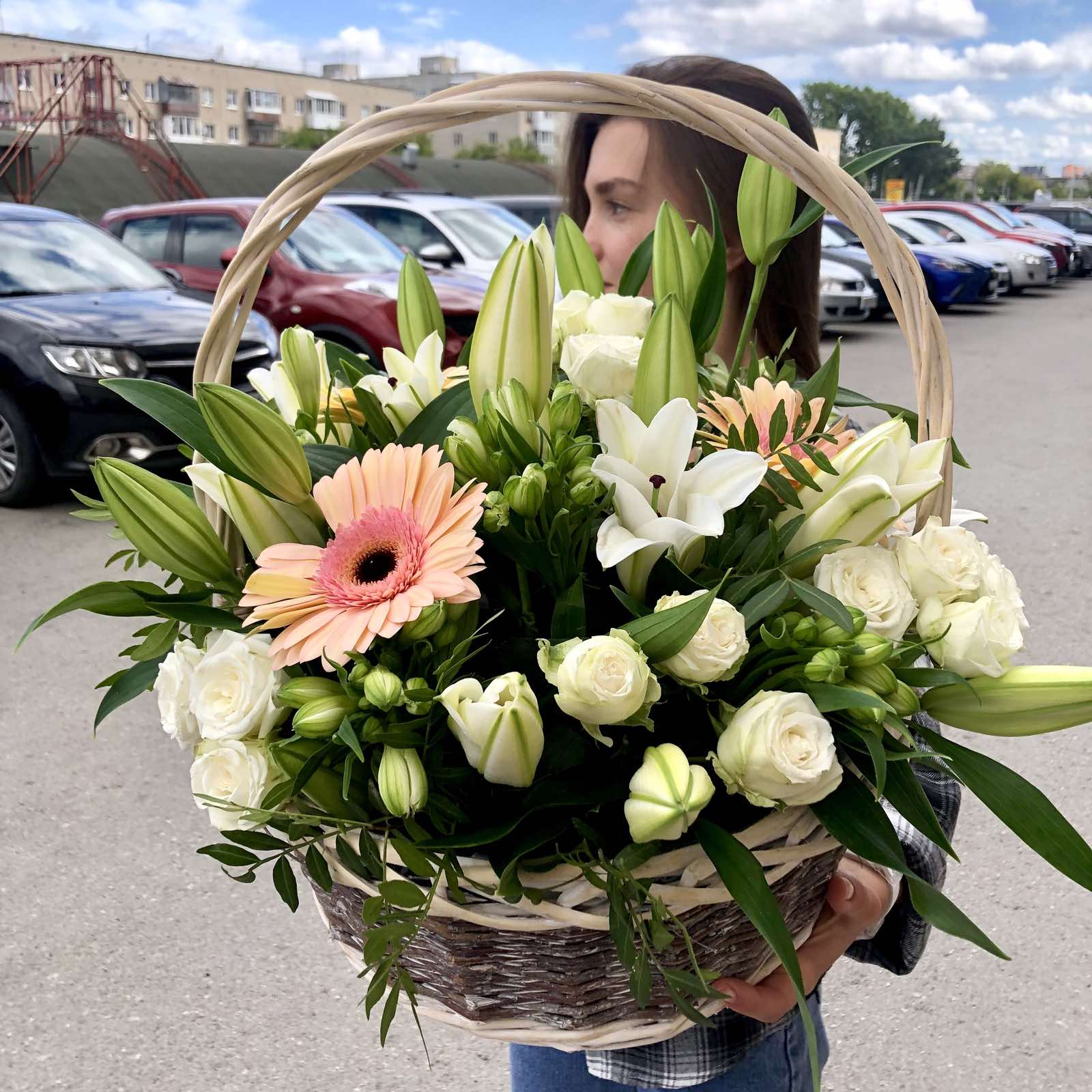 Отличная корзина с лилиями, герберами, розами и альстромерией.