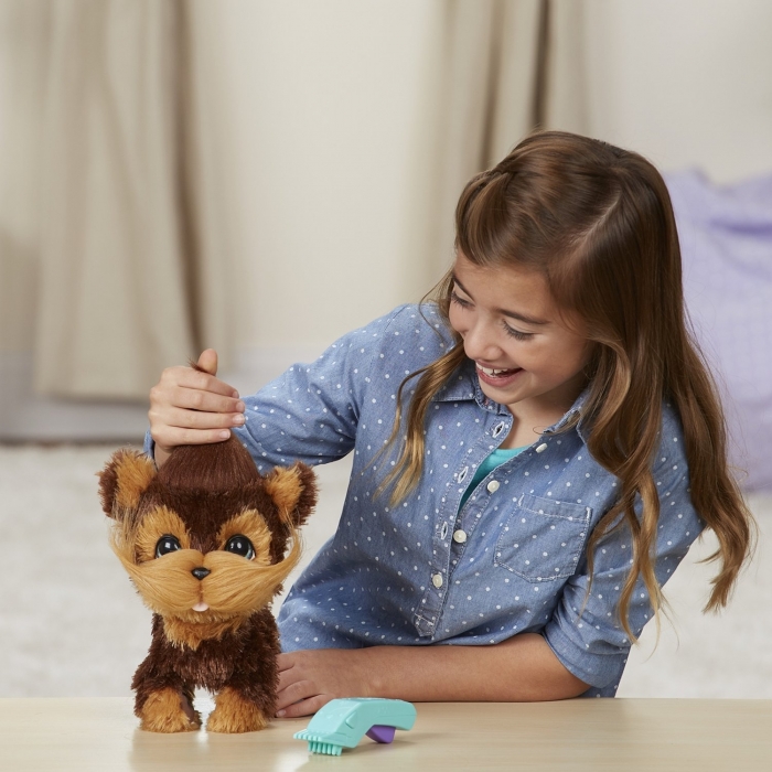 - Дети могут уделять время уходу и укладке этого пушистого щенка;