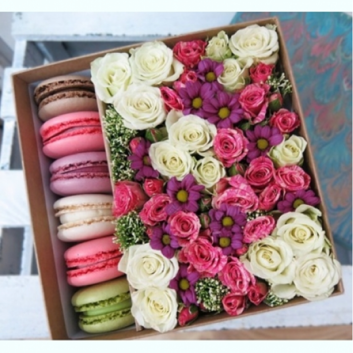 ГлавнаяБукетыЦветы с макарунами Композиция с макарунами «Сладкое утро»