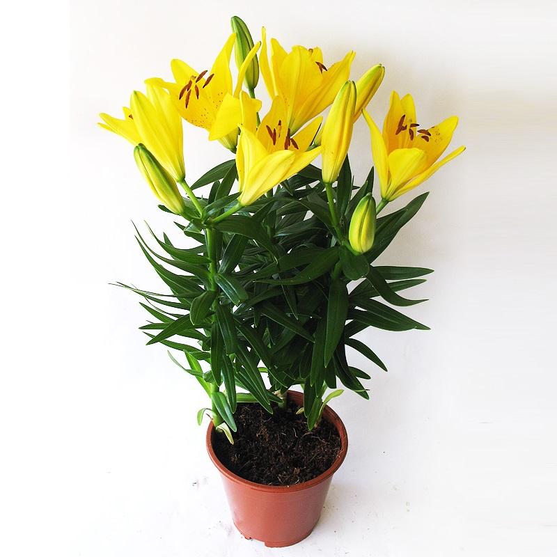 Лилия в горшке. Цвет лилии может быть изменен, чаще всего это желтая или розовая